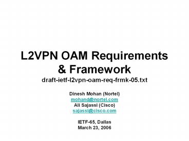 L2VPN OAM Requirements PowerPoint PPT Presentation
