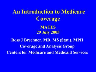 Title: An Introduction to Medicare Coverage MATES 29 July 2005