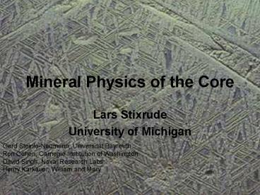 Steinle-Neumann, Stixrude, Cohen, Gulseren,
