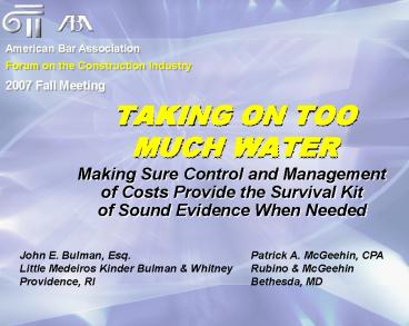 Title: TAKING ON TOO MUCH WATER