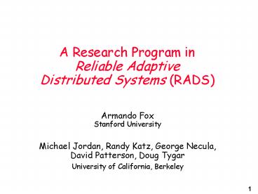 <Notice: Removed> A Research Program in Reliable Adaptive Distributed Systems RADS PowerPoint PPT Presentation