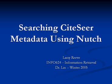 <Notice: Removed> Searching CiteSeer Metadata Using Nutch PowerPoint PPT Presentation