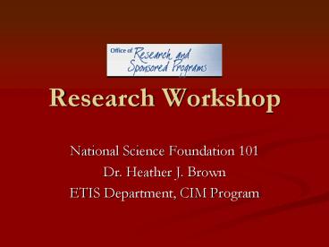 Research Workshop PowerPoint PPT Presentation