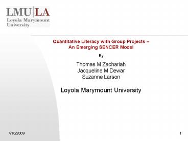 <Notice: Removed> Quantitative Literacy with Group Projects An Emerging SENCER Model PowerPoint PPT Presentation