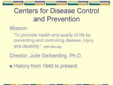 Centers for Disease Control and Prevention PowerPoint PPT Presentation
