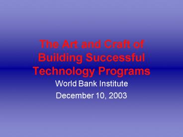 <Notice: Removed> The Art and Craft of Building Successful Technology Programs PowerPoint PPT Presentation