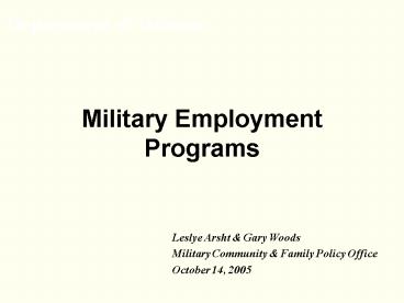 Title: Military Employment Programs