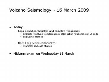 1Volcano Seismology - 16 March 2009