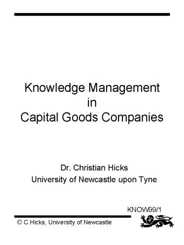 Knowledge Management in Capital Goods Companies PowerPoint PPT Presentation