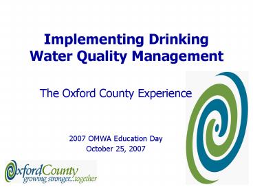 Implementing Drinking Water Quality Management - PowerPoint PPT Presentation