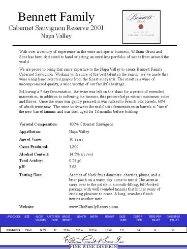 Bennett Family. Cabernet Sauvignon Reserve 2001. Napa Valle PowerPoint PPT Presentation