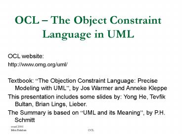 <Notice: Removed> OCL The Object Constraint Language in UML PowerPoint PPT Presentation