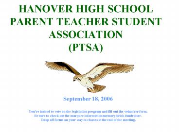 HANOVER HIGH SCHOOL PARENT TEACHER STUDENT ASSOCIATION PTSA PowerPoint PPT Presentation