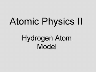 Title: Atomic Physics II