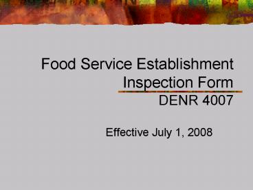 Title: Food Service Establishment Inspection Form DENR 4007