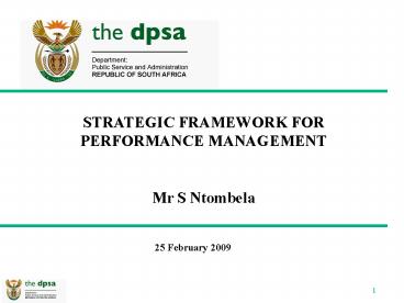 Title: STRATEGIC FRAMEWORK FOR PERFORMANCE MANAGEMENT