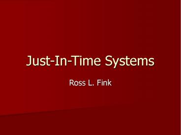 Just-In-Time Systems PowerPoint PPT Presentation