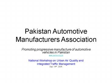 Pakistan Automotive Manufacturers Association PowerPoint PPT Presentation