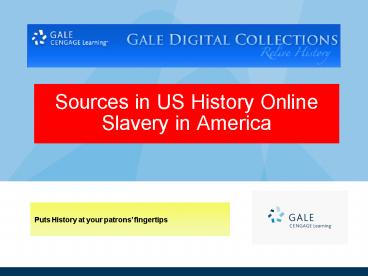 Title: Sources in US History Online Slavery in America