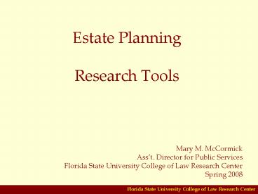 <Notice: Removed> Estate Planning Research Tools PowerPoint PPT Presentation
