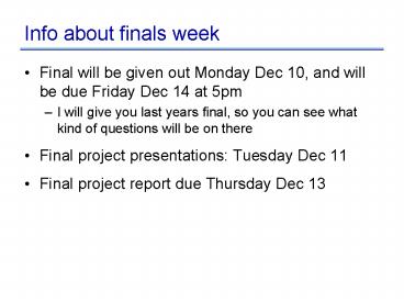 be due Friday Dec 14 at 5pm - I will give you last years final, so you can see