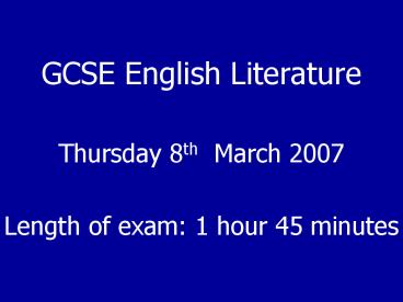 <Notice: Removed> GCSE English Literature PowerPoint PPT Presentation