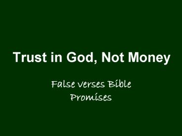 1Trust in God, Not Money