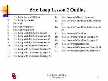 1for Loop Lesson 2 Outline