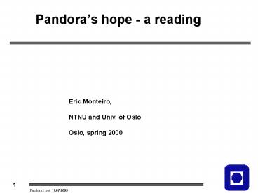 Eric Monteiro, NTNU and Univ. of Oslo Oslo,