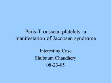 ParisTrousseau platelets: a manifestation of Jacobsen syndrome PowerPoint PPT Presentation