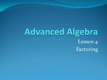 Advanced Algebra PowerPoint PPT Presentation