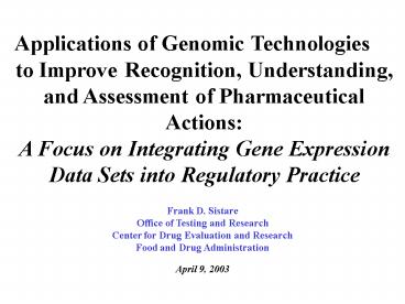 Gene Expression Data Sets into Regulatory Practice