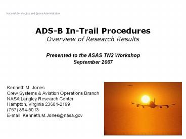 1ADS-B In-Trail ProceduresOverview of Research