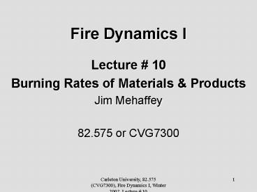 Fire Dynamics I PowerPoint PPT Presentation