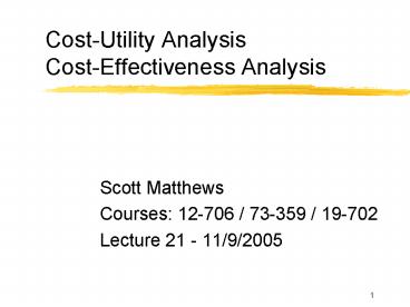 <Notice: Removed> Cost-Utility Analysis Cost-Effectiveness Analysis PowerPoint PPT Presentation