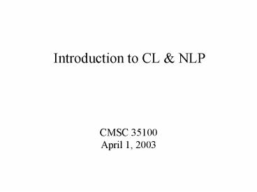 Introduction to CL PowerPoint PPT Presentation