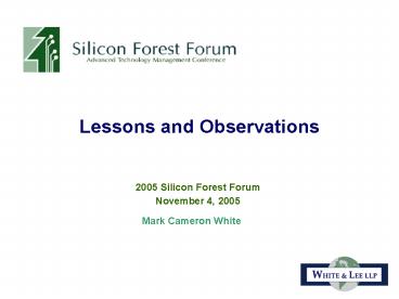 2005 Silicon Forest Forum Mark Cameron White