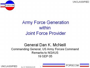 Army Forces Command Remarks to NGAUS 19 SEP 05