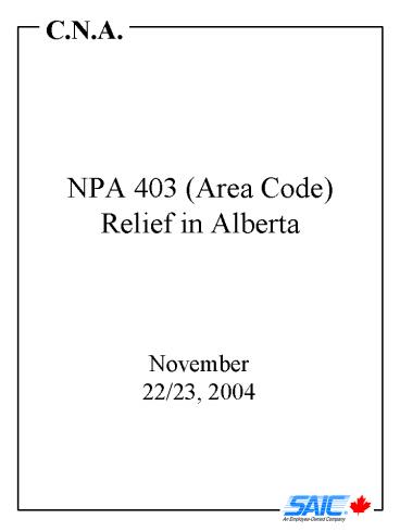all 337 Alberta Exchange Areas). - NPAs 403, 780 and the new NPA would be expected