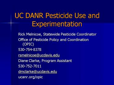 Title: UC DANR Pesticide Use and Experimentation
