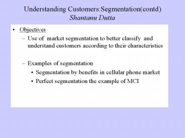 Title: Understanding Customers:Segmentationcontd Shantanu Dutta