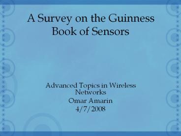 <Notice: Removed> A Survey on the Guinness Book of Sensors PowerPoint PPT Presentation