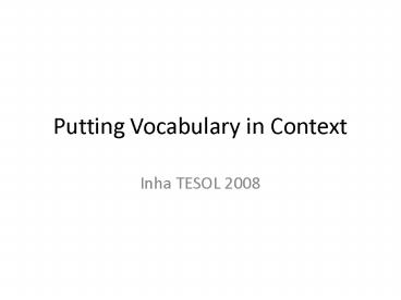 Putting Vocabulary in Context PowerPoint PPT Presentation