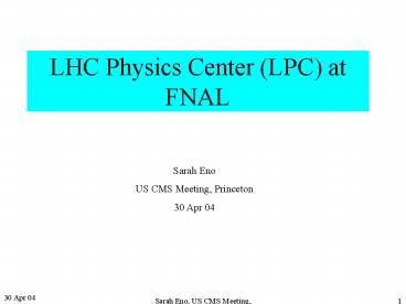 Title: LHC Physics Center LPC at FNAL