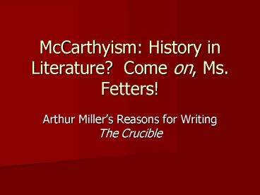 McCarthyism: History in Literature Come on, Ms. Fetters PowerPoint PPT Presentation