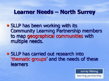 Learner Needs North Surrey PowerPoint PPT Presentation