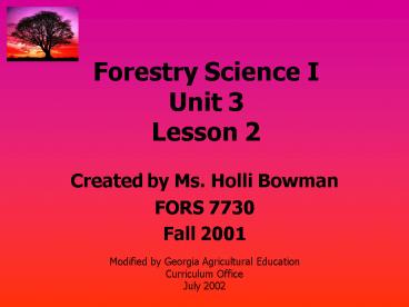 Title: Forestry Science I Unit 3 Lesson 2