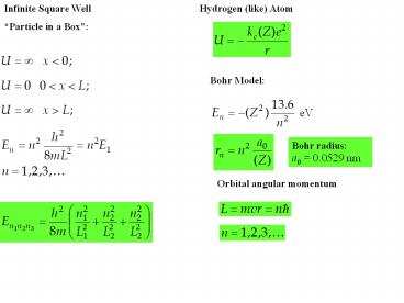 Infinite Square Well PowerPoint PPT Presentation