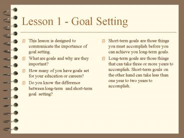 <Notice: Removed> Lesson 1 Goal Setting PowerPoint PPT Presentation