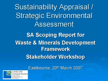 Title: Sustainability Appraisal Strategic Environmental Assessment